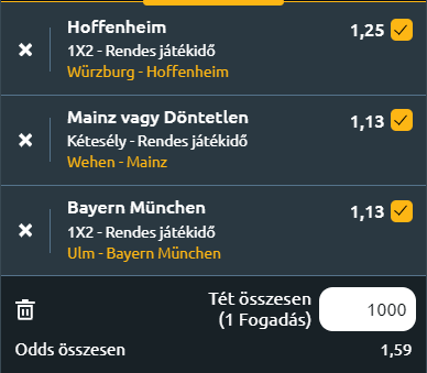 - Wehen Wiesbaden - Mainz 05: A Bundesligában szereplő Mainz 05 a 3. Ligában szereplő Wehen Wiesbaden ellen küzd a Német Kupában. A két szomszédos város között rivalizálás és komoly erőkülönbség is van! A Wiesbaden az előző szezonban kiesett a 2. Bundesligából, miután májusban elveszítette a Jahn Regensburg elleni kiesési rájátszást, de Nils Doring csapata jól kezdte a bajnoki szezont. A házigazdák az FC Hansa Rostock ellen aratott 1-0-s hazai győzelmet. A Wiesbaden a nyári átigazolási időszakban eddig 12 játékost igazolt, akik a szezon végén vissza akarják szerezni helyüket a német labdarúgás másodosztályában. A Mainz számára ez lesz a szezon első tétmérkőzése, miután szombaton a Montpellier elleni 3-1-es hazai győzelemmel zárta a felkészülési mérkőzéseket. Andreas Hanche-Olsen, Phillipp Mwene és Nelson Weiper góljai elég voltak ahhoz, hogy a 05-ösök befejezzék a gólgazdag előszezont, amelynek során Bo Henriksen csapata mindössze négy mérkőzésen 15 gólt szerzett. Tavaly egészen jól teljesített a gárda és ha a Mainz az idei szezonban is folytatni akarja jó formáját, akkor sok múlik Jonathan Burkardt és Jae-sung Lee támadójátékán, akik az elmúlt szezonban 14 gólt szereztek együtt. A Wiesbaden jól kezdte a szezont, de a Mainz is és sokkal komolyabb csapatok ellen szerzett gólokat a felkészülési meccseken, mint a Wiesbanden, de itt egy döntetlent is jogosnak érzek! X2