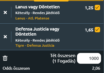 - Tigre - Defensa y Justicia: A Tigre rendkívül gyengén kezdte a 2024-es argentin Primera División szezont, első öt mérkőzésükön nem nyertek, három vereség és két döntetlen volt a mérlegük. Végül megszerezték első győzelmüket az Argentinos Juniors ellen, és bár azóta javultak, továbbra is ingadozó teljesítményt nyújtanak. Októberben és november elején viszont remek sorozatot értek el, öt veretlen mérkőzést játszva, amelyekből két győzelem és három döntetlen született. Ez a széria azonban legutóbb véget ért, amikor 1-0-ra kikaptak a Velez Sarsfieldtől. Ezzel a pozitív eredménysorral a Tigre a 16. helyre lépett előre a tabellán, 26 pontot gyűjtve 21 meccsből, és céljuk, hogy a szezon hátralévő részében tovább javítsák helyezésüket. A Defensa nagy csalódással tekint az idei szezonra, jelenleg a 25. helyen állnak 22 ponttal 21 mérkőzésből, messze elmaradva a tavalyi hatodik helyüktől. Eddig öt győzelmet és hét döntetlent értek el, kilenc vereséggel, ami több, mint az elmúlt három év bármelyikében. Az első tíz bajnoki mérkőzésükön nyeretlenek maradtak, majd végül a Banfield ellen megszerezték első győzelmüket, de azóta is csak két további győzelmet könyvelhettek el nyolc mérkőzés alatt. Az utóbbi két találkozójuk azonban bíztató, mivel idei első sorozatban elért győzelmeiket aratták a Belgrano és az Argentinos Juniors ellen, mindkét alkalommal 2-1-es eredménnyel. Céljuk, hogy tovább javítsanak a helyezésükön és folytassák győzelmi szériájukat egy olyan stadionban, ahol az elmúlt négy látogatásukon veretlenek maradtak, és ezek közül kétszer győzni is tudtak. Itt is a döntetlen ami esélyes, valamint a vendégsikerre is van sansz. X2