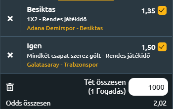 - Galatasaray- Trabzonspor: A Galatasaray legutóbb az Európa-ligában lépett pályára, ahol a svéd Malmö ellen 2-2-es döntetlent ért el a csapat. Az elmúlt hónapban szoros mérkőzéseket játszottak, jellemzően egygólos különbséggel nyertek, vagy döntetlent értek el. Példa erre a legutóbbi bajnoki találkozójuk a Sivasspor ellen, amelyet 3-2-re nyertek, annak ellenére, hogy a 16. percben kiállították Metehan Baltaci középhátvédet, és hátrányból kellett fordítaniuk. A Galatasaray hat ponttal vezeti a Süper Lig tabelláját, miután a második helyezett Fenerbahce pontokat veszített. Sérülésekkel is meg kell küzdeniük, hiszen két sztárcsatáruk, Mauro Icardi és Victor Osimhen sem áll rendelkezésre. Ennek ellenére a csapat hazai pályán eddig domináns volt, nyolc mérkőzésükből hatot megnyertek, és ezt a sorozatot szeretnék folytatni a Trabzonspor ellen is. A Trabzonspor, amely tavaly harmadik helyen végzett, most a kiesés elkerüléséért küzd. A hétszeres Süper Lig-bajnok jelenleg mindössze két ponttal és két helyezéssel áll a kiesőzóna felett, miután 14 mérkőzésből 16 pontot szereztek. Az elmúlt hat mérkőzésükből csak egyet nyertek meg, és négy vereséget szenvedtek el. Legutóbb a Kasimpasa ellen játszottak 2-2-es döntetlent, ahol a hosszabbításban vesztettek el egy vezetést, annak ellenére, hogy a második félidőben két gyors góllal fordítottak. A Trabzonspor idegenben kifejezetten gyenge, az eddigi hét vendégszereplésükből egyet sem tudtak megnyerni. Legutóbbi győzelmüket a Galatasaray ellen 2022-ben érték el, épp Isztambulban, de azóta jelentősen gyengült a teljesítményük. A Galatasaray sérülésekkel küzd, de hazai pályán továbbra is erős, a Trabzonspor viszont nem adja magát könnyen. Gólváltás várható.