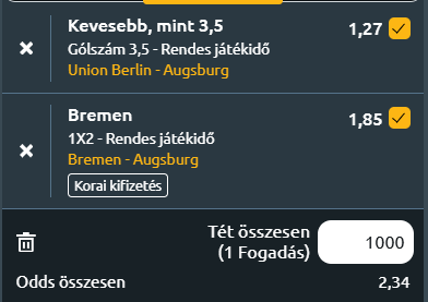 - Union Berlin – Augsburg: A két csapat jelenlegi formája hasonló abban a tekintetben, hogy mindkettő szenved a támadójátékban, míg védekezésben változó teljesítményt mutatnak. Union Berlin a Bundesliga harmadik legrosszabb gólszerző csapata 14 találattal, viszont védelmük kimagaslóan teljesít, hiszen csak 21 gólt kaptak, ami a liga harmadik legjobb mutatója. Azonban a hazaiak 10 mérkőzés óta nyeretlenek, és az utóbbi négy hazai találkozójukon sem tudtak győzni, bár csak egyszer kaptak ki otthon ebben a szezonban. Augsburg támadásban valamivel eredményesebb, hiszen 17 gólt szereztek, ám védelmük gyenge pont, mivel 33 kapott góllal a liga harmadik legrosszabb mutatóját produkálják. A csapat idegenbeli teljesítménye aggasztó: kilenc meccsükből ötöt elvesztettek, és mindössze kettőt nyertek meg. Kevés gól várható a mérkőzésen, mivel mindkét csapat gyengén teljesít a támadóharmadban. Az Union Berlin masszív védekezése miatt nehéz lesz Augsburgnak helyzeteket kialakítani, míg a hazaiak támadójátéka sem elég hatékony ahhoz, hogy sok gólt szerezzenek. Under 3,5 gól a tipp.