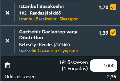 - Basaksehir – Sivasspor: Az Istanbul Basaksehir támadójátéka az utóbbi időben gyengélkedik, hiszen három mérkőzés óta nem tudtak gólt szerezni. A csapat formája felemás, az elmúlt öt bajnokijukból kettőt megnyertek, egyet döntetlenre hoztak és kettőt elveszítettek, miközben az előző három meccsük előtt tíz gólt is szereztek. Otthon viszont erősek, hiszen a 12 bajnoki mérkőzésükből csak kettőt veszítettek el, és hatszor győztek. A Sivasspor ezzel szemben komoly gondokkal küzd, hiszen az elmúlt hat mérkőzéséből ötöt elveszített, és négyszer még csak gólt sem tudott szerezni. Az idegenbeli formájuk kifejezetten gyenge, hiszen az utóbbi nyolc vendégszereplésükből hetet elbuktak, 19 kapott gól mellett csak hatszor találtak be. A hazai győzelem jó esély ma erre a meccsre! 1