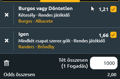 - Burgos – Albacete: A spanyol másodosztály alsóházában kiélezett csata várható hétfő este, amikor a kiesés elkerüléséért küzdő Burgos CF hazai pályán fogadja az Albacetét. Mindössze egy pont választja el a két csapatot a tabellán, így a tét óriási. A Burgos egy értékes idegenbeli győzelemmel a háta mögött érkezik, míg az Albacete magabiztos 3-0-s sikerrel hangolt, de idegenben gyengélkedik. A hazai pálya kulcsszerepet játszhat, hiszen az elmúlt hét egymás elleni találkozón mindig az aktuális házigazda nyert vagy döntetlent játszott. A Burgos egyre jobb formába lendül. A csapat az utóbbi öt bajnokijából hármat is megnyert, és a legutóbbi fordulóban fontos idegenbeli győzelmet aratott a Racing Club Ferrol ellen. Mindezeken túl az Albacete öt mérkőzés óta nyeretlen idegenben, ebből hármat elveszített, ami kedvez a Burgos számára. A hazai győzelem mellett a döntetlennek van nagy valószínűsége.