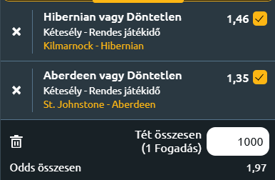 - Kilmarnock – Hibernian: A Kilmarnock számára rendkívül gyenge szezon ez a mostani, hiszen a tavalyi negyedik hely után most a kiesés ellen kell küzdeniük. Derek McInnes csapata az elmúlt három meccsét egyaránt elveszítette, így ma nagyon erős győzelmi kényszerben vannak. Csakhogy a Hibernian nagyon jó formában van amióta Andy Gray átvette a csapatot. A legutóbbi találkozójukon a Celtic megállította őket a Skót Kupában, de előtte 15 mérkőzésen keresztül veretlenek voltak. A Hibs szezonkezdeti mélypontja után mostanra a harmadik helyre kapaszkodott fel, és egy újabb győzelemmel stabilizálhatná helyét a legjobb hat között. A hazaiak gyenge formája, valamint a Hibs lendülete alapján a vendégek esélyesek arra, hogy minimum egy pontot hazavigyenek! X2 a tipp itt is.