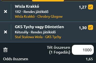 - Stal Stalowa Wola – GKS Tychy: A Stal Stalowa Wola és a Tychy 71 összecsapása alapján egy viszonylag kiegyenlített, de a vendégek felé billenő mérkőzés várható, amely elsősorban a pillanatnyi forma tükrében fog eldőlni. A Stal Stalowa Wola gyenge szezonon van túl, mindössze két győzelmet arattak, és jelenleg az utolsó, 18. helyen állnak, miközben átlagosan kevesebb mint egy gólt szereznek meccsenként, és közel kettőt kapnak. Ezzel szemben a Tychy 71 stabil középcsapatként a 8. pozícióban található, jobb gólkülönbséggel és erősebb támadójátékkal, hiszen átlagosan 1,31 gólt lőnek és csak 1,04-et kapnak. A legutóbbi öt meccsük alapján is egyértelmű a kontraszt: míg a Stal nyeretlen maradt (0 győzelem, 2 vereség, 3 döntetlen), a Tychy 71 négyszer is győzött, ráadásul meccsenként több mint két gólt szerzett, miközben a védelme is rendben tette a dolgát. A vendégsiker mellett a döntetlen esélyes még.