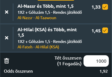 - Al-Nassr – Al-Taawoun: Sorsdöntő mérkőzés vár az Al-Nassr csapatára, amely az Al-Taawount fogadja a Szaúdi Profi Liga 32. fordulójában. A hazaiak tudják: ha nem nyernek, akár végleg lemondhatnak a nemzetközi kupaindulásról. Az esélyek egyértelműen az Al-Nassr mellett szólnak, amely ugyan jelenleg csak a harmadik helyen áll, de a legutóbbi fordulóban kiütéses, 9-0-s győzelmet aratott az Al Okhdood ellen – ráadásul Cristiano Ronaldo nélkül. Ez a győzelem nemcsak önbizalmat adott, hanem jelezte, hogy Stefano Pioli csapata, élén a négygólos Manéval, képes dominálni még klasszisai hiányában is. A tét óriási, mivel csak két hely jut a következő AFC Bajnokok Ligájába, az Al-Nassrnak gyakorlatilag kötelező a győzelem, ha életben akarja tartani ezen reményeit. Az Al-Taawoun formája gyenge, négy meccsből hármat elvesztettek, ráadásul gólt sem szereztek ezek során, és már matematikailag is lemaradtak a nemzetközi kupákról. Mivel számukra nincs valódi tét, miközben az Al-Nassr számára ez egy mindent eldöntő mérkőzés, várhatóan a hazaiak motiváltabb és élesebb játékkal, jobb egyéni képességeik révén magabiztos győzelmet aratnak. Tipp: Al-Nassr nyer és több, mint 1,5 gól a meccsen.