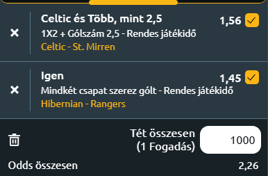 - Hibernian – Rangers: A skót élvonal zárófordulójában a már biztos harmadik Hibernian fogadja a második helyet szintén bebiztosító Rangerst, egy olyan találkozón, amely tét híján is komoly presztízsharcot ígér, ahol a búcsúzó hazai pálya előnye könnyen meglepetést is jelenthet! A Hibernian fantasztikus tavaszt produkált, miután a szezon első felében mélyen a tabella alján vergődött, a 16. forduló után egy 17 meccses veretlenségi sorozat indult be David Gray irányításával, aminek eredményeként már a bajnoki rájátszás előtt bebiztosították a harmadik helyet, ami pedig jövőre Európa-liga-szereplést ér. Bár a rájátszásban kissé megtorpantak (1 győzelem, 1 döntetlen, 2 vereség), az utolsó hazai meccsükön szeretnének egy újabb sikert aratni a Rangers ellen, ahogy azt legutóbb (2–0) is megtették. A Rangers szezonja gyenge volt! A gyenge szezonkezdet után Philippe Clement elveszítette állását, Barry Ferguson megbízott edzőként próbálta stabilizálni a csapatot, több-kevesebb sikerrel. A hajrában ugyan nyertek két meccset is, de a szezon egészét tekintve a második hely elmarad a klub és a szurkolók elvárásaitól. A játékosok Ferguson esetleges végső búcsúja alkalmából is motiváltak lehetnek, de a Hibernian lendülete és hazai pályaelőnye, különösen az idény alakulását tekintve, miatt a hazai siker valószínűbb. A gólokra érdemes itt rámenni, annak a valószínűsége, hogy mindkét csapat betalál ma, igen jó! Tipp: Mindkét csapat szerez gólt!