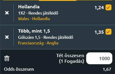 - Franciaország - Anglia (nők): Kiegyenlített mérkőzést rendeznek a női Európa-bajnokságban, ahol Franciaország és az Eb-címvédő Anglia csap össze, kettejük mellett Hollandia és Wales alkotja az erős négyest. Franciaország csoportelsőként zárta (4 győzelem, 2 vereség) a selejtezőcsoportját, a Nemzetek Ligájában hatból hatot nyert, majd barátságos meccseken is sikerült legyőzniük Belgiumot és Brazíliát is. Anglia, bár 2022-ben EB-t nyert, a döntőben Németországot győzték le a hazai rendezésű kontinenstornán, de azóta felemás eredményekkel bírnak. A Nemzetek Ligájában 3 győzelem, 1 döntetlen és 2 vereség a mérleg, felkészülési mérkőzésen agyonverték (7-0) Jamaikát. Viszont vannak sérülések (Earps, Kirby, Bright), amelyek komolyan hátráltathatják a hatékonyságot. Kiegyensúlyozott mérkőzés várható, ahol a három kimenetel közül bármi előfordulhat, akár egy gól is dönthet. A két kiváló válogatott meccsén, azonban, jó eséllyel minimum két gól várható majd!