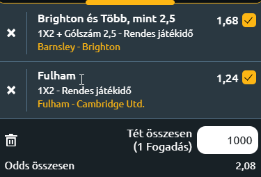 - Barnsley – Brighton: Az EFL Kupa harmadik fordulójában a harmadosztályban szereplő Barnsley és a Premier League egyik meghatározó középcsapata, a Brighton vív meg egymással. A két csapat közötti különbség egyértelmű, és minden tényező a Brighton sikerét vetíti előre. A vendégek ugyan még nem találták meg a legjobb formájukat a Premier League-ben, ám tapasztalatuk, játékoskeretük minősége és az elmúlt évek kupamenetelése alapján sokkal esélyesebbek a továbbjutásra. A Barnsley hazai pályán képes lehet megszorongatni az élvonalbeli ellenfelet, és a közelmúltban látott győzelmi sorozata alapján a szurkolók is reménykedhetnek egy szorosabb mérkőzésben, de a sérülések és a minőségbeli különbségek miatt reálisan kevés esély mutatkozik a bravúrra. Ami a gólok számát illeti, mindkét csapat hajlamos a nyílt játékra, a Barnsley a saját közönsége előtt biztosan próbálkozni fog a támadásokkal, míg a Brighton minőségi támadósora képes több gólt szerezni. Emiatt várható, hogy legalább három találat születik, és a vendégek győzelmével zárul majd a párharc.