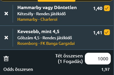 - Hammarby – Charleroi: A legfontosabb különbség a két gárda között az, hogy a svédek már a bajnokság felénél járnak, így elméletileg jobb fizikai állapotban és versenykörnyezetben vannak, míg a belgák még a szezonkezdet előtt állnak, ami jelentős különbséget jelenthet a játék ritmusában és intenzitásában. A Hammarby kiemelkedő formában érkezik erre az összecsapásra, hiszen az Allsvenskanban jelenleg a második helyen áll, és az utóbbi hat bajnoki mérkőzéséből ötöt megnyert, ami erős önbizalmat és jó mentális állapotot jelez. A Charleroi ezzel szemben még nem játszott tétmérkőzést az új idényben, csupán öt felkészülési találkozón van túl, amelyeken három győzelem, egy döntetlen és egy vereség a mérlegük. Bár ez nem rossz teljesítmény, a versenyhelyzet hiánya és az idegenbeli első mérkőzés komoly hátrányt jelenthet számukra. Mindezek alapján a hazai pálya és a jobb formában lévő Hammarby legalább egy döntetlenre, de inkább győzelemre számíthat, hiszen a svédek jelenlegi lendülete és a bajnoki ritmusuk egyértelműen esélyesebbé teszi őket ezen a találkozón.