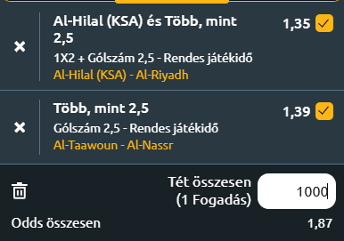 - AL Hilal – Al Riyadh: A szaúdi élvonal új idényének nyitányán az Al-Hilal hazai pályán, a Kingdom Arénában fogadja az Al Riyadh csapatát. A bajnoki címre pályázó házigazdák azonnal győzelemmel szeretnék kezdeni a szezont. Az Al-Hilal a múlt idényben nem tudta megvédeni bajnoki címét, mivel nyolcpontos hátránnyal az Al-Ittihad mögött végzett. Bár az elmúlt kilenc évben hat alkalommal is aranyérmes lett, a fokozódó verseny miatt már nem olyan egyeduralkodó, mint korábban. Az Al Riyadh gyenge formával zárta a múlt idényt, hiszen az utolsó 16 mérkőzéséből mindössze kettőt tudott megnyerni, és végül csak az idény első felében szerzett pontjainak köszönhette, hogy bent maradt a ligában. Az összesítésben a 11. helyen zártak, ami ugyan javulás a korábbi 14. pozícióhoz képest, ám mindössze öt pont választotta el őket a kiesőzónától. A két csapat közti különbség óriási, az Al-Hilal a nyáron tovább erősödött, gólerős formában készül a szezonra, és saját közönsége előtt általában dominál. Az Al Riyadh ezzel szemben gyenge alapokról indul, a felkészülésen sem mutatott fejlődést, és már az első két fordulóban a két legerősebb rivális otthonában kell helytállnia. Mindezek alapján szinte borítékolható, hogy az Al-Hilal fölényes győzelemmel indítja a bajnokságot! Tipp: Hazai és több, mint 2,5 gól