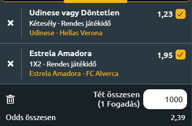 - Estrela Amadora – Alverca: A Primeira Liga harmadik fordulójának mai játéknapján az Estrela Amadora fogadja az újonc Alvercát. Mindkét együttes első győzelmére hajt az új idényben, a hazaiak egy ponttal állnak két forduló után, míg a vendégek mindkét találkozójukat elveszítették. Az Estrela Amadora számára nem indult jól az idény, de ellenfeleik erejét figyelembe véve nem is volt könnyű dolguk. Az első fordulóban az Estoril otthonában Ianis Stoica 75. percben szerzett gólja mentett egy pontot, majd a Benfica ellen hiába játszottak lelkesedéssel, papírforma vereséget szenvedtek. Ebből semmiképpen nem szabad messzemenő következtetéseket levonni. Jose Faria vezetőedző ma visszatérhet az eltiltása után, ami komoly lökést jelent majd. A gárda játéka rendben volt, ma reális esélyük van arra, hogy megszerezzék a győzelmet! Az Alverca ugyanis újonc és nagyon gyengén kezdett! Az első fordulóban a Moreirense otthonában még közel álltak a pontszerzéshez, ám Yan Maranhao hosszabbításban szerzett találata végül 2-1-es vereséget jelentett. A második forduló már sokkal nehezebbnek bizonyult, hiszen a Braga elleni összecsapáson 36 perc alatt három gólt kaptak, és innen már nem tudtak visszajönni a meccsbe. A gárda legutóbbi két összecsapása az Estrelával vereséget hozott, a tavalyi szezonban 3-0-ra kaptak ki ezen a pályán, és a visszavágón sem tudtak nyerni. Ezek alapján már egy döntetlen is eredménynek számítana a csapattól.