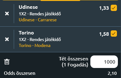 - Udinese – Carrarese: A Coppa Italia első fordulójában az Udinese hazai pályán fogadja a Carrarese-t. Az Udinese jól erősített, majd a felkészülési időszakban három győzelemmel zártak, ami jó alapot adhat a szezonkezdethez, a gárda célja a Serie A felső felébe való visszatérés. A Coppa Italia-ban tavaly a harmadik fordulóban búcsúztak az Inter ellen, így most hazai pályán szeretnék megkezdeni a menetelést. A Carrarese az olasz másodosztály kis csapata. Az előző szezonban a 12. helyen zártak Serie B-ben, miután a 2024-es Serie C playoffban felülmúlták a várakozásokat és győzelmet arattak Vicenza ellen. Antonio Calabro vezetésével sikerült stabilan bent maradniuk az élvonal alatti osztályban, és a szezon elején is a jó szereplésre törekednek. A mérkőzésen az Udinese hazai pályán és erősebb keretével várhatóan akkor is jobb lesz majd, ha rotálnak a meccsen. A Carrarese eddig felülmúlta a várakozásokat, de az Udinese minőségi fölénye-, valamint a hazai előny miatt nehéz dolguk lesz. A találkozón szoros, de a hazai győzelem várható!