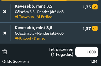 - Al-Tawoun – Al-Ettifaq: Az Az Al Taawoun felemásan kezdett a bajnokságban egy győzelem, egy vereség, és nincsen döntetlen a szezon eddigi részében. Az átlagos gólszámuk 1,5 találat meccsenként, míg a kapott gólok száma 3,5, ami arra utal, hogy védekezésük instabil lehet. A legutóbbi fordulóban Al Akhdoud ellen 2-3-ra nyertek idegenben, ami jelzi, hogy támadásban képesek gólt szerezni, de a védelemben akadhatnak problémák. A korábbi egymás elleni mérkőzések alapján az Al Taawoun két győzelmet aratott az utóbbi öt összecsapásból, és átlagosan mérkőzésenként 1 gólt szerez. Az Al Ettifaq mérlege egy győzelem, egy döntetlen a a szezon eddigi mérkőzésein, és az átlagos gólmutatójuk 1–0,5 találat, ami stabil, de nem túl gólgazdag játékot sejtet. A statisztikák alapján mindkét csapat képes gólt szerezni, azonban a mérkőzés kiegyensúlyozott lesz. Az Al Taawoun támadójátéka aktív, de védekezésük gyengébb, míg az Al Ettifaq stabilabb védekezéssel operál, és kevesebb gólt kap. Az esélyek alapján a vendégek minimálisan esélyesebbek a győzelemre, de a találkozó gólokban nem lesz kiemelkedően gazdag, a védekezés és az óvatos játék miatt mindkét fél részéről mérsékelt gólszám várható.