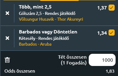 - Barbados – Aruba: A világbajnoki selejtezők észak-amerikai zónájának C csoportjában két sereghajtó, Barbados és Aruba csap össze. A mérkőzés esélyese Barbados, amely bár vereségekkel kezdte a selejtezősorozatot Curaçao (1-4) és Haiti (1-3) ellen, azt követően négy győzelemmel menetelt a Nemzetek Ligájában, és csak egy gólzáporos (4-9) kieséssel búcsúzott Guyana ellen a kieséses szakaszban. A barbadosi támadási hatékonyság meglepően jó, az utóbbi hat meccsük közül öt legalább háromgólos volt! Aruba oldalán ugyanakkor komoly gondok látszanak! Hat egymást követő vereség a Nemzetek Ligájában, tizenhét kapott góllal, és csak egy barátságos siker a gyenge Kambodzsa ellen. Egy nyílt, gólokban gazdag mérkőzésre van kilátás, ahol a barbadosiak fölénye és jobb formája döntő lehet, de az arubai találat sem lenne meglepetés. A hazai győzelem mellé az X-et is behúzva már erős tippet kapunk! Tipp: 1X