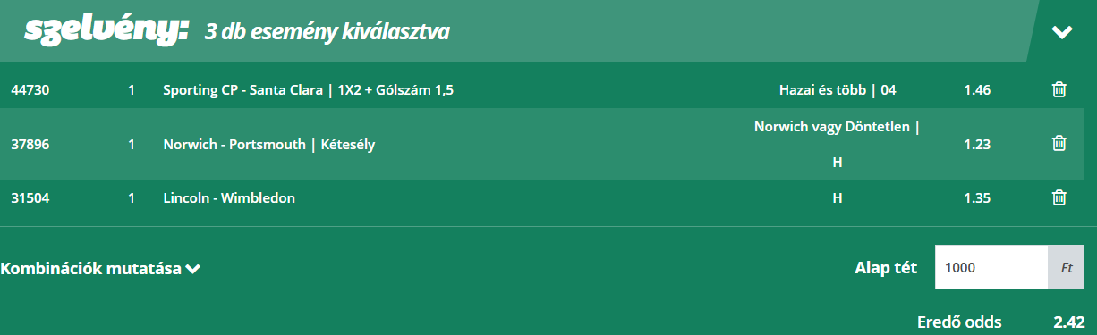 A Tippmixes javaslatokat folytatjuk, minimum duplázó szelvényekben gondolkodunk. Az események számát illetően 2-3 meccsnél több nem várható. A sportág főleg labdarúgás, de esetenként kézilabda, kosárlabda, tenisz is bekerülhet majd a válogatásba. Sok sikert mindenkinek!