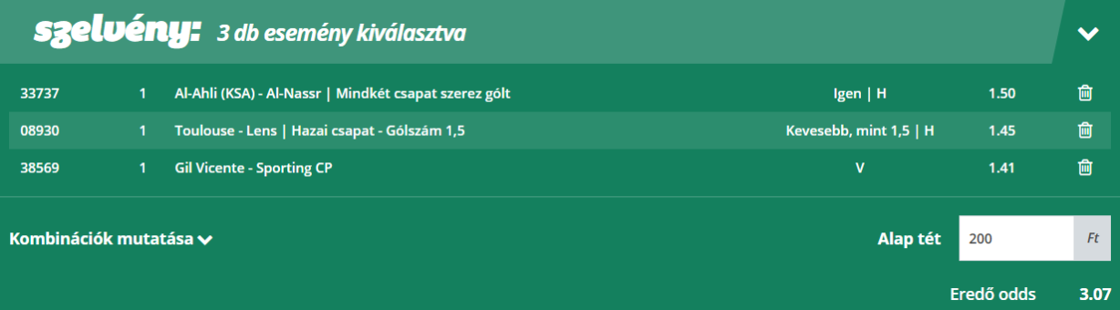 Az olvasók kedvenc rovatában vegyes szelvényeket próbálunk összehozni, amelyben két-három mérkőzést kombinálunk majd egy ajánlatba. Az eredő szorzó 3,0 fölött van kicsivel, a meccskínálat függvényében. Ezek a szelvények kiválóan alkalmasak Fibonacci stratégiára, bankrollmenedzsmenttel kombinálva. Fosszuk ki az irodákat együtt!