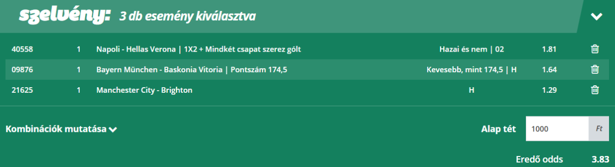 Az olvasók kedvenc rovatában vegyes szelvényeket próbálunk összehozni, amelyben két-három mérkőzést kombinálunk majd egy ajánlatba. Az eredő szorzó 3,2 és 3,9 között van a meccskínálat függvényében. Ezek a szelvények kiválóan alkalmasak Fibonacci stratégiára, bankrollmenedzsmenttel kombinálva. Fosszuk ki az irodákat együtt!