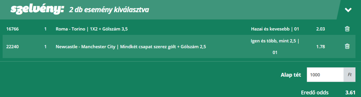 Az olvasók kedvenc rovatában vegyes szelvényeket próbálunk összehozni, amelyben két-három mérkőzést kombinálunk majd egy ajánlatba. Az eredő szorzó 3,2 és 3,9 között van a meccskínálat függvényében. Ezek a szelvények kiválóan alkalmasak Fibonacci stratégiára, bankrollmenedzsmenttel kombinálva. Fosszuk ki az irodákat együtt!