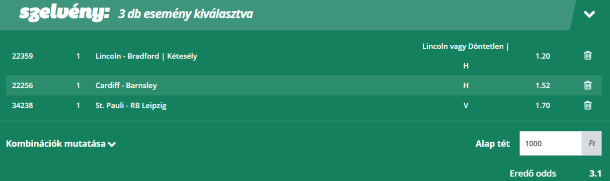 Az olvasók kedvenc rovatában vegyes szelvényeket próbálunk összehozni, amelyben két-három mérkőzést kombinálunk majd egy ajánlatba. Az eredő szorzó 3,2 és 3,9 között van a meccskínálat függvényében. Ezek a szelvények kiválóan alkalmasak Fibonacci stratégiára, bankrollmenedzsmenttel kombinálva. Fosszuk ki az irodákat együtt!