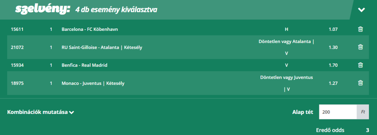 Az olvasók kedvenc rovatában vegyes szelvényeket próbálunk összehozni, amelyben két-három mérkőzést kombinálunk majd egy ajánlatba. Az eredő szorzó 3,2 és 3,9 között van a meccskínálat függvényében. Ezek a szelvények kiválóan alkalmasak Fibonacci stratégiára, bankrollmenedzsmenttel kombinálva. Fosszuk ki az irodákat együtt!