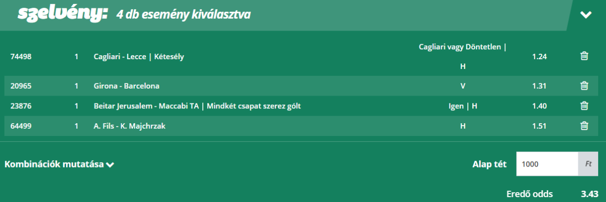 Az olvasók kedvenc rovatában vegyes szelvényeket próbálunk összehozni, amelyben két-három mérkőzést kombinálunk majd egy ajánlatba. Az eredő szorzó 3,2 és 3,9 között van a meccskínálat függvényében. Ezek a szelvények kiválóan alkalmasak Fibonacci stratégiára, bankrollmenedzsmenttel kombinálva. Fosszuk ki az irodákat együtt!