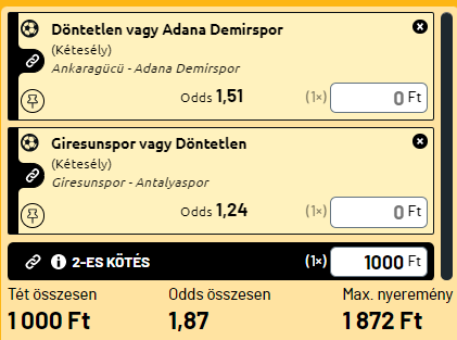 - Giresunspor – Antalyaspor: A Giresunspor a 2022-23-as szezon utolsó játéknapján az Antalyaspor ellen igyekszik bebiztosítani a török Super Ligában való bennmaradását. Míg a Giresunspor egy pontra van a biztonságtól, addig a 12. helyen álló Antalyaspornak már csak a bajnoki helyezés a kérdés a szerdai összecsapáson. A Giresunspor mindenáron három pontot szeretne szerezni, hogy segítse a túlélési esélyeit, de az Antalya az utolsó öt idegenbeli meccséből hármat döntetlenre hozott. Ez a két lehetőség jöhet be: 1X a tipp.