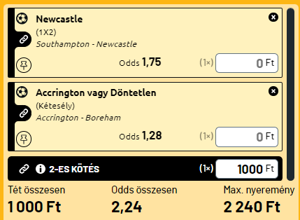- FA Kupa: A rengeteg hiányzó játékos az Accrington Stanley számára komoly hátrány, kemény és szoros meccsre számíthatnak az alapvetően gyengébb Boreham Wood ellen, akinek nincs vesztenivalója. A hazai győzelem mellett benne van a döntetlen lehetősége is!