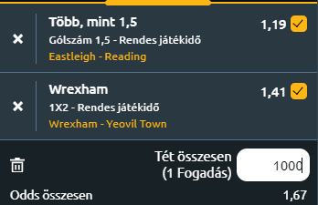 - Eastleigh – Reading: A National League-ben szereplő Eastleigh vasárnap az FA-kupa második fordulójában a javuló formát mutató Readinget fogadja a Silverlake Stadionban. A Royals kínkeserves kampányt élt át, de Ruben Selles menedzser a Readingnél elkezdte jobbá tenni a dolgokat. Miután a Reading 30 év után először esett vissza a harmadosztályba, ebben a szezonban három hazai kupamérkőzésen játszott, de gyakorlatilag minden sikerük ezekről származik. Mindkét fél részt vett néhány izgalmas, gólokban gazdag találkozón az utóbbi időben, és a bajnoki helyezések közötti különbség ellenére ez egy versenyképes kupamérkőzés lesz. A Reading azonban a legjobb teljesítményét a kupákra tartogatta, és miután az utóbbi időben a bajnokságban is formába lendültek, itt a továbbjutásért fognak küzdeni. Mindkét csapat szerez gólt és over 2,5 várható: A szelvényre csupán over 1,5 gól kerül.