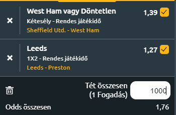 - Leeds – Preston: A Leeds tavaly esett ki a Premier Ligából, de megvan az esélye annak, hogy azonnal visszajutnak, a Championship egyik legjobb csapatáról van szó. A bajnokságban 27 mérkőzés után 15 győzelemmel és 51 ponttal a 4. helyen állnak. Mindössze hét ponttal vannak lemaradva a 2. helyen álló Ipswich mögött. A Leeds két egymást követő győzelemnél tart a bajnokságban a legutóbbi három mérkőzésükön nem kaptak gólt. Az elmúlt 10 mérkőzésen a Leeds öt győzelmet és három vereséget könyvelhetett el, és csak három csapat van náluk jobb formában az elmúlt két és fél hónapban. Ami különösen fontos, hogy az Elland Roadon a Leeds fantasztikusan szerepel ebben a szezonban. Ebben a szezonban 13 meccs után még veretlenek, ebből kilencet megnyertek. A Preston elképesztően kezdte a szezont, az első hat mérkőzés után hat győzelemmel. A tabella élén álltak, de ezt követően a következő 21 meccsen mindössze öt győzelmet arattak. Jelenleg 11 győzelemmel és 38 ponttal a 12. helyen állnak a tabellán, és mindössze két ponttal vannak lemaradva az első hatos zónától. Az utóbbi három hónapban a formájuk nagyon aggasztó. A ligában csak négy csapat van náluk rosszabb formában az elmúlt három hónapban. A Preston két egymást követő vereség-sorozatban volt, mielőtt múlt héten legyőzték a Bristolt. Az utolsó hat meccsükön négy vereséget szenvedtek el. Ha a Leeds fel akar jutni idén, akkor ezt a meccset kötelező megnyernie!