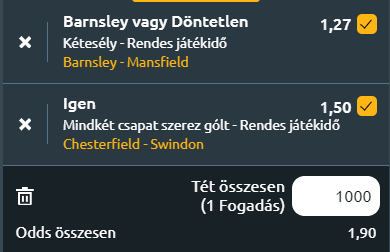 - Barnsley - Mansfield Town: A Barnsley számára fontos lesz, hogy túllépjenek a múlt szezonban elszenvedett csalódáson, amikor is nem sikerült feljutniuk, míg a Mansfield újonc, így a bentmaradásért küzd. A Barnsley vezetősége április végén meglepő döntést hozott, amikor leváltották Neill Collins vezetőedzőt, de ez a lépés nem vált be, mivel a csapat elbukott a rájátszás elődöntőjében. Azóta Darrell Clarke-ot nevezték ki új vezetőedzőnek, annak ellenére, hogy a Cheltenham Town-nál nem volt túl sikeres. Clarke azonban már több csapattal is sikeresen jutott feljebb pályafutása során, és a Barnsley abban bízik, hogy ez a sorozat 2024-25-ben is folytatódik. Kiemelt igazolások közé tartozik a Birmingham City védője, Marc Roberts, valamint a Derby County középpályása, Conor Hourihane, akik mindketten visszatérnek korábbi klubjukhoz. A Barnsley utolsó felkészülési mérkőzése kedden volt az olasz Roma ellen, ahol 4-0-s vereséget szenvedtek St George's Parkban. Ami a Mansfieldt illeti, hosszú idő után újra visszatértek az angol futball harmadik osztályába. Bár végül lemaradtak a League Two bajnoki címéről, Nigel Clough és a klub vezetősége elégedetten zárta a szezont, hiszen megszerezték az automatikus feljutást biztosító utolsó helyet. Noha a Mansfieldet a kiesés egyik esélyesének tartják, az ausztrál válogatott Keanu Baccus és a tapasztalt csatár, Lee Gregory leigazolása akár meg is mentheti őket. De ma nem kap ki hazai környezetben a Barnsley! 1X