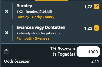 - Plymouth Argyle- Swansea City: A Plymouth nehéz helyzetben van, miután az előző szezonban épphogy sikerült elkerülniük a kiesést, és idén is a bennmaradásért küzdenek. Wayne Rooney irányítása alatt a csapat gyengén kezdte az idényt: 20 mérkőzésükből mindössze ötöt nyertek meg, és a legutóbbi kilenc találkozón csak egy győzelmet szereztek, miközben öt alkalommal vereséget szenvedtek. Különösen fájóak a Norwich City és Bristol City elleni súlyos vereségek, ahol összesen 10 gólt kaptak és csak egyet szereztek. Jelenleg a tabella 22. helyén állnak, a kiesőzónában. A Swansea City kiegyensúlyozottabb teljesítményt mutatott az idény első felében, jelenleg a 13. helyen állnak 24 ponttal. Luke Williams vezetésével a csapat csak hét ponttal van lemaradva a playoff-helyektől, és jelenleg a szezon leghosszabb veretlenségi sorozatán vannak: legutóbbi három mérkőzésükön nem kaptak ki, köztük egy Derby County elleni 2-1-es győzelemmel, valamint két döntetlennel Portsmouth és Luton ellen. A mérkőzés esélyese egyértelműen Swansea, tekintve Plymouth gyenge formáját és a vendégek jelenlegi stabil teljesítményét. Nem kap ki a vendéggárda.