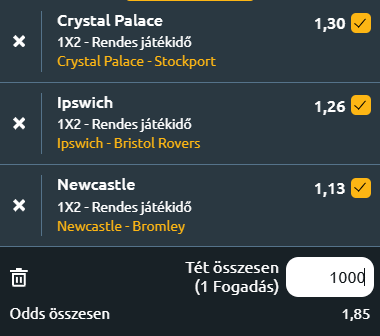 - Newcastle United – Bromley: A Newcastle United elképesztő formában van, hiszen legutóbbi hét mérkőzésüket megnyerték a Premier League-ben és az EFL Kupában, beleértve egy remek 2-0-ás győzelmet az Arsenal ellen is! Eddie Howe csapata jelenleg az ötödik helyen áll a Premier League-ben, mindössze egy ponttal lemaradva a Bajnokok Ligája-helyet érő negyedik helyről, és rendkívül magabiztosan várja a League Two-ban szereplő Bromley elleni FA Kupa-mérkőzést. A vendégcsapat történelmi pillanatot él meg, hiszen először jutottak el az FA Kupa harmadik fordulójába, de legutóbbi, 4-1-es vereségük a Crewe Alexandra ellen rávilágított korlátaikra. Bár Michael Cheek, a 13 gólos támadó jelenthet némi veszélyt, a Premier League egyik legjobb védelme ellen nehéz dolga lesz. Nyer a Newcastle, akár több góllal is!