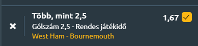 - A Bournemouth egy 1-1-es döntetlennel érkezik, miután a Newcastle United elleni meccsükön egy vitatható VAR-döntés miatt megvonták tőlük a győzelmet. Dango Ouattara utolsó percben szerzett fejesgólja kétes kézszabály miatt érvénytelen lett, ami feldühítette Andoni Iraola edzőt. A Bournemouth két döntetlent játszott eddig az idényben, és még mindig alkalmazkodik a Dominic Solanke nélküli élethez. Következő Premier League-mérkőzésük az Everton ellen lesz, így egy jó eredmény most lendületet adhatna nekik. Ez a meccs most egy kifejezetten hasonló esélyeket mutat, a West Ham enyhén esélyesebb a hazai pálya előnye miatt, de a Bournemouth sem könnyű ellenfél. Mindkét gárda jól támad, a stílusból és a motivációból fakadóan várható itt a minimum három gól!
