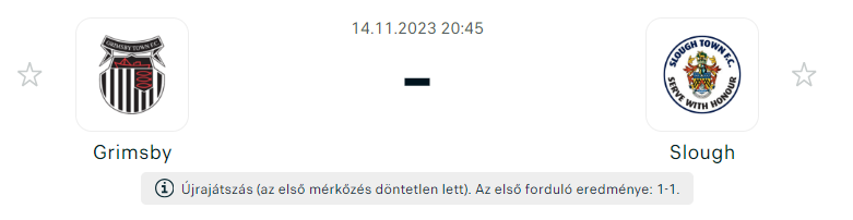 - A Grimsby már megízlelte a váratlan sikerek édes ízét az FA-kupában, amikor tavaly a negyeddöntőig jutott. A 2023-24-es szezonra vonatkozó törekvéseik azonban majdnem szertefoszlottak az első fordulóban, amikor Scott Davies szabadrúgása a hálóba talált. A Slough az utolsó pillanatokig tartotta magát, de Danny Rose 75. percben szerzett gólja megakadályozta, hogy bebiztosítsák a közvetlen továbbjutást a második fordulóba. Az immár Shaun Pearson és Ben Davies által irányított csapat, amely október végén vette át az irányítást Paul Hurst utódjaként, megszakította ötmeccses vereségsorozatát, így hazai szurkolói előtt kapott lehetőséget a jóvátételre. A fordulat és a Slough elleni vereség elkerülése lehet az a katalizátor, amire a Grimsbynek szüksége volt ahhoz, hogy átformálja a szezonját. Ezt a meggyőződést erősíti, hogy szombaton egy izgalmas League Two összecsapáson az első félidei hátrányból fordítva 3-2-re diadalmaskodtak a Morecambe felett, ahol Rose, Kieran Green és Rekiel Pyke talált a hálóba. Számos országos csapathoz hasonlóan a Grimsby-t is érintik a nemzetközi behívók: Otis Khan Pakisztánt, Kamil Conteh Sierra Leonét, Abo Eisa pedig Szudánt képviseli. A jobbhátvéd Michee Efete a Morecambe elleni mérkőzésen hiányzott a Slough elleni kezdeti döntetlen alkalmával elszenvedett sérülése miatt, így valószínűleg Toby Mullarkey-nak ismét be kell töltenie ezt a posztot.