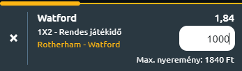 - Két csapat küzd azért, hogy véget vessen a rossz formának, ma a New York Stadionban csap össze, a Rotherham United a Watfordot fogadja. A házigazdák a Championship tabellájának végén tanyáznak, 14 pontra vannak a biztonságtól, láthatóan nem bírják felvenni a bajnokság ritmusát, a kiesés egyik biztos résztvevői. Míg a vendégek hét pontra vannak a rájátszást érő helyektől, de rossz formában vannak, az elmúlt öt meccsen nem tudtak nyerni és pontból is csak kettőt szereztek. A Watford kijelölt célja a rájátszás, de egyelőre úgy fest, nem elég jók hozzá. Ma kellene csavarni egyet a formán és a liga leggyengébb csapatát meg kell verni! Jó kis formába hozó meccs ez, nyernek a vendégek!