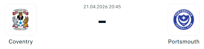 - A Portsmouth kiváló formában érkezik, öt meccse veretlenek, és sorozatban három győzelmet arattak kapott gól nélkül, köztük a Middlesbrough és az Ipswich ellen, majd legutóbb a Leicestert múlták felül 1–0-ra, ahol Ibane Bowat találata döntött. Ennek köszönhetően a 18. helyre léptek előre, hét pontra eltávolodva a kiesőzónától három fordulóval a vége előtt. A Coventry az egymás elleni mérlegben fölényben van, az utóbbi öt találkozóból négyet megnyert, beleértve az októberi 2–1-es sikert is, és a Portsmouth az utolsó két coventry-i vendégjátékát is elveszítette. Nincsen hiányzó a keretben, így a legerősebb gárda állhat ki a meccsen.