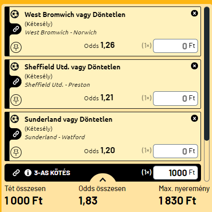 - Sheffield Utd. - Preston: A SHU ünneplésben van, így nem biztos, hogy a legtöbbet tudják kihozni magukból, de azért az megfelelő motiváció lehet, hogy hazai közönség előtt, az ünneplő szurkolók tömege ne lásson már vereséget. Nem is lesz vereség ma, de az X becsúszhat.