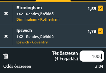 Ipswich Town - Coventry City: Az Ipswich Town, amelynek lehetősége van arra, hogy a Leicester Cityt megelőzze a Championship tabellájának élén, szombat délután a feltámadó Coventry Cityt fogadja a Portman Roadon. A Traktoros Fiúk legutóbb megverték a Millwallt, míg az Égszínkékek kedden a Plymouth Argyle ellen arattak szűk sikert. Az Ipswich Town szerda este tökéletes választ adott a West Bromwich Albiontól elszenvedett, mindössze második vereségére az előző mérkőzésen: a feljutást üldöző kelet-angliaiak Conor Chaplin, Massimo Luongo és a walesi válogatott Nathan Broadhead első félidei találatainak köszönhetően 3-1-re verték a Millwallt a Portman Roadon. A Millwall elleni legutóbbi összecsapáson akár négy vagy öt gólt is szerezhetett volna az Ipswich. Nagyon erős csapat, kiváló formában vannak. A Coventry nem volt meggyőző a hazai győzelemben egy olyan Plymouth ellen, amelyik masszívan küzdenek idegenben, így ma ennél fokozottabban nehezebb dolguk lesz! Simán nyernie kell az Ipswich-nek.