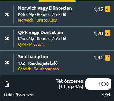 - Norwich City - Bristol City: Itt is hasonló a helyzet, csak picit másképpen. A Norwich City jelenleg a 6. helyen áll 71 ponttal és ez a pozíció playoff-részvételt és! Ezt a helyet kell megőrizniük minden áron. A Bristol City a 12. helyezett, számukra már nincs tét, nincs ami motiválja őket. A Norwich remekül játszik hazai környezetben, a Bristol viszont jó formában van! Éppen ezért nem sima hazai győzelem a tipp, hanem 1X.