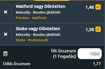 - Preston North End – Watford: A Watford győzelmi esélyei több tényezőre épülnek. A csapat a legutóbbi fordulóban visszatért a győzelmi útra, miután 2-1-re legyőzték a Sunderlandet, ami önbizalmat adhat nekik. Hazai pályán különösen erősek voltak eddig a szezonban, hiszen hat mérkőzés óta veretlenek, bár idegenben kevesebb sikerrel szerepeltek. Ezzel szemben Preston négy mérkőzés óta nyeretlen, és a hétvégén 3-1-es vereséget szenvedett a Millwall ellen. Tovább nehezíti a helyzetüket, hogy Sam Greenwood eltiltás miatt nem játszhat, ami gyengíti a védelmet. A Watford friss lendülete és Preston gyenge formája együttesen valószínűbbé teszi a Watford győzelmét, de a hazai pálya miatt a döntetlent is megtartjuk! X2