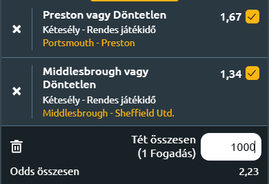 - Portsmouth - Preston North End: Szintén a Ligabajnokságban a győzelmi kényszerben pályára lépő Portsmouth és a veretlenségi sorozatát megőrizni kívánó Preston North End találkozik. A hazai gárda a tavalyi 16. helyezés után magasabb célokat tűzött ki, de John Mousinho együttese a nyitófordulóban aratott Oxford elleni győzelem óta nem találja a győzelem útját. A Reading és a Norwich ellen is 2–1-re kaptak ki hazai pályán, majd a West Bromwich Albion vendégeként ugyan egy pontot sikerült szerezniük, de összességében három tétmérkőzés óta nyeretlenek. A Preston jó formában kezdett, három bajnokiból hét pontot szereztek, és így veretlenül érkeznek a dél-angliai találkozóra. A QPR elleni döntetlen és a Barrow elleni kupasiker után két hazai mérkőzésen is győzelmet arattak, Leicester és Ipswich legyőzésével, amelyek során Milutin Osmajic lett a hős, hiszen mindkét bajnokin győztes gólt szerzett. A mérkőzés esélyese a jelenlegi formák alapján a Preston. A vendégek lendületesen kezdték a szezont, hét ponttal a tabella élmezőnyében állnak, és veretlenek a bajnokságban. Ezzel szemben a Portsmouth hazai pályán is gyengélkedik, két vereség után próbálna javítani, de sérülések és formagondok nehezítik a helyzetét. A Preston ráadásul közvetlen egymás elleni mérlege is kedvező, így minden adott ahhoz, hogy folytassák sikeres sorozatukat. Az 1X remek választás egy szelvénybe!