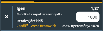 - A Cardiff City remekül játszott legutóbb, amikor pontot mentettek. Ma szeretnék megelőzni a West Bromwich Albiont és bejutni a legjobb hat közé, amikor a két csapat kedden találkozik a Championshipben. Nagyon fontos-, mondhatni ki-ki meccs lesz ez a mai, két playoff-ért küzdő alakulat között. A Cardiff a szombati, Preston elleni utolsó perces hőstett után ismét felpörög majd, a West Brom pedig Corberan irányítása alatt ütőképes alakulattá vált. Gólváltás várható.