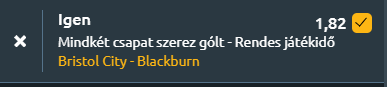 - A Blackburn Rovers ma este az Ashton Gate-re utazik ahol a hazai Bristol City ellen megszerzett győzelemmel szeretne egyre távolabbra menekülni a kiesés elől! Jelenleg a 16. helyen állnak a tabellán, míg a Bristol City a 12. helyen áll és egy stabil középcsapat, amelyet sem a kiesés veszélye nem fenyegeti, sem pedig a feljutás esélye nem motiválja. Mindkét csapat javuló formát mutatott az utóbbi időben, ami megteremti a gólhelyzetek lehetőségét. Mindkét oldal betalál majd és erős eséllyel egy 1-1-es döntetlenben kiegyeznek!