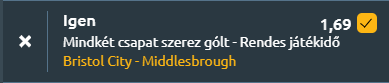 - A Bristol City zárkózni akar a rájátszást érő helyekhez, hiszen mindössze két pont választja el őket a top hat mezőnytől. Az utóbbi időszakban a védelem erősödött, nehezen verhető csapattá váltak, hiszen a legutóbbi hat bajnokijukból csak egyet veszítettek el. Idegenben továbbra is szenvednek, hiszen már kilenc idegenbeli mérkőzés óta nem tudtak nyerni. Hazai pályán viszont kimagaslóan teljesítenek, hiszen nyolc bajnokijukból hatot megnyertek Ashton Gate-ben. Ezzel szemben a vendégek nagyon gyenge formában vannak, hiszen az utóbbi 11 bajnokijukból csak kettőt nyertek meg, míg az utóbbi hat találkozójukból ötöt elveszítettek. Michael Carrick csapata sorozatban négy bajnokit veszített el, ráadásul a legutóbbi három idegenbeli mérkőzésüket is elvesztették, így nem sok jel utal arra, hogy képesek lennének meglepetést okozni. Ugyanakkor a Boro az egyik legeredményesebb idegenbeli csapat a bajnokságban, hiszen 15 vendégmeccsükön 26 gólt szereztek, így van esélyük arra, hogy betaláljanak! Mindezek alapján a kimenetelt hanyagolni kell, viszont a gólváltás nagyon is elképzelhető!
