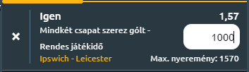 - Angolul BTTS-ként kell keresni ezt a fogadási fajtát. A lényeg az, hogy olyan meccset keressünk, ahol több technikás, gólerős játékos található, a csapat(ok) általában támadó játékot játszanak, illetve azok a meccsek is esélyesek ahol valami komoly motivációs tényező van az egyik-, vagy akár mindkét csapatnak. Pl. ha egy rájátszásért, vagy a kiesés elkerülése miatt nagyon kellenek a pontok. Ha kupajellegű, kieséses mérkőzést választunk, akkor mindig legyen tétje a meccsnek. Egy BL-összecsapás már a kiesési szakaszban sokszor remek lehetőséget nyújt. Kisebb bajnokságokban, másodosztályokban kerülendő ez a fogadási forma!