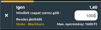 - A Championship tabellájának közepén mindössze egyetlen pont választja el egymástól a két csapatot, amelyek szombaton, a nemzetközi szünetről visszatérve találkoznak egymással. Ezúttal a Stoke City fogadja a Blackburn Roverst. A szünet előtti formába lendülésnek köszönhetően a házigazdák feljöttek a 14. helyre az angol másodosztályban, míg a vendégek csak egy ponttal állnak jobban a 12. helyen. A Stoke-nál a nehéz kezdés után Alex Neil vezetésével megindultak fölfelé, a forma határozottan javul, már előre kell nézni, nem pedig hátra. A vendégek eközben arra törekednek, hogy növeljék a két csapat közötti különbséget, és javítsák saját esélyeiket a top hatosba kerülésre. Ehhez viszont ma idegenben is nyerni kellene a Stoke ellen, ami nem lesz könnyű feladat! A Stoke Citynél a szünet előtti jó formának köszönhetően biztosan van önbizalom az öltözőben, és a hazai pályán úgy tervezik, hogy a sérülések miatt meggyengült Blackburn ellen győzni fognak, akik viszont még így is jók lehetnek legalább egy gólra. 2-1 körüli hazai sikert várok, de mindenképp gólváltást.