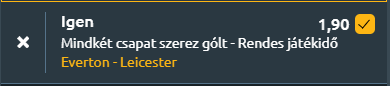 - Az Everton alapvetően sokat javult az elmúlt időszakban, ez különösen a védekezést illetően lehet kijelenteni. Az utóbbi két fordulóban nyerni tudtak a Mersey-partiak, a Tottenham-et és a Brightont is legyőzték. A másik oldalon a Leicester is végre nyerni tudott, ráadásul ők is a Tottenhamet verték meg. Az Everton támadásban még nem az igazi, ezen a téren mindenképpen kell még javulni, a csapat így egy olyan Leicester ellen, amely a Tottenham legyőzésével önbizalmat szerzett, nem biztos, hogy képes lesz végig kontrollálni a meccset. Az Everton ugyan hét ponttal eltávolodott a kiesőzónától, de a támadójátékuk továbbra is akadozik, amit jól mutat, hogy a Brighton ellen mindössze egy kaput eltaláló lövésük volt, az is büntetőből. Ugyanakkor az elmúlt két fordulóban végre sikerült zsinórban gólokat szerezniük, ami önbizalmat adhat nekik. A Leicester pedig még vastagon benne van a kiesés elleni harcban, így számukra minden egyes pontra komoly szükség van! Ha a Leicester képes hasonló hatékonysággal kontrázni, mint a Spurs ellen, akkor jó eséllyel betalálnak majd, az Everton számára pedig otthon mindenképp kötelező lenne a gól minimum. Ebben a meccsben a döntetlen is vastagon benne van, de a két alsóházi csapattól sokkal agresszívabb játékot várok, mint amit eddig mutattak, ez pedig gólváltást eredményez majd.