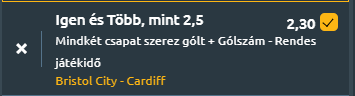 - A Sheffield Wednesday elleni döntetlen után a Bristol City mindenképp szeretne három pontot szerezni a rivális ellen, különösen hazai pályán. A Cardiff győzelme a Millwall ellen növelte a csapat önbizalmát, így egy gólra jók lesznek, sőt akár a döntetlenre is, de az is biztos, hogy hazai pályán a Bristol betalál! Minimum három gólt várok és mindkét oldal betalál majd.