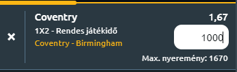 Egy Single Value Tipp következik, vagyis a sportfogadásban egy olyan értékelhető szorzó, amely single játékba küldés esetén is értéket hordoz magában! Az angol Championship két alsó-középcsapata találkozik ma, a 17. helyen álló Coventry a 15. helyezett Birmingham-et fogadja. Kettejük között egy pont különbség van, kifejezetten szoros meccset várhatunk.