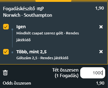 - A fogadóirodák a Southamptont tartják esélyesebbnek ezen a mérkőzésen a jobb mérlegük, a bajnoki pozíciójuk és a jelenlegi formájuk miatt. De a Norwich-ot otthon nem szabad lebecsülni, mindenképpen jók lesznek egy gólra biztosan. A gólváltás mellett az over 2,5 is benne van a mérkőzésben!